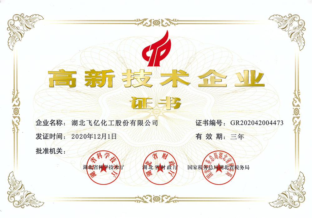 湖北飛億化工股份有限公司以人為本、倡導學習。經過多年的凝聚和歷練,公司擁有豐富實踐經驗的技術人員和銷售、生產的團隊,不斷研發適合市場和客戶的高質量產品。并努力爭取各項產品和服務達到客戶滿意。